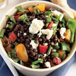 Haşlanmış beluga mercimeği geniş bir kaba alın. Küp doğradığınız biberler, domatesler ve ince kıydığınız yeşillikleri ilave edip karıştırın. Sosu için gerekli olan tüm malzemeyi bir kasede karıştırıp piyazın üzerine gezdirin. Tulum peyniri ile süsleyerek servis yapın.