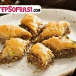 - Tepsideki yufkaları baklava dilimi şeklinde dilimleyin. üzerine - her yanına değecek biçimde- 150g kızgın tereyağ