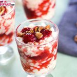 - Aralarına ve üstüne çilek sosu ekleyerek servis bardaklarına paylaştırın. Son olarak üstünü kavrulmuş ceviz içi ile tamamlayarak ılıması için bir kenarda bekletin.
