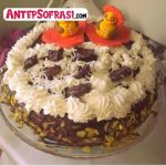- Pastamız soğuduktan sonra üzerini ve etrafını krem şantiyle kaplıyoruz.