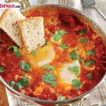 Sosu arayalarak yumurtaları boşluklara kırın ve kısık ateşte pişirin. Kişniş yaprağı ve karabiber serpiştirip sıcak servis yapın.