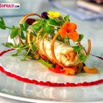 - Servis ederken altta ıspanak yatağı etrafında pancar püresi ve spiral kıtır hamur içinde levrek sarma yerleştirilir.