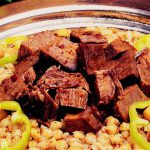 Öte yanda, tencereden çıkarılan etler 3 kaşık sadeyağ ile kızartılarak dövme aşının üzerine dizilir.