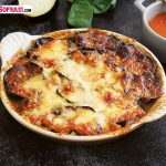- Fırına girecek kaplara önce patlıcan dilimini yerleştirin ve üzerine domates sos ile dilimlenmiş mozzarella peyniri ve bir adet fesleğen yaprağı koyun. Aynı işlemi tekrarlayın. En üste yine bir kat daha patlıcan koyun ve sostan ekleyin. Son olarak toz parmesan peynirini serperek 180 derece ısıtılmış fırında 20-25 dakika pişirin ve sıcak servis edin.