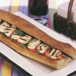 - Sırasıyla; domates dilimleri, taze fesleğen yaprakları ve kızartmış olduğunuz peyniri ekmeğin arasına dizin. Özenle kapatıp ılık servis yapın. Afiyet olsun.