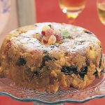 Elmayı soyup küp küp doğrayın. Kuru meyveli karışıma elma, 2 yumurta ve bademi ekleyip karıştırın. Un, ufalanmış ekmek içi, zencefil, tarçın ve muskatı ilave edip iyice karıştırın.