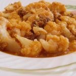 Karnabahar ve tuz, kıyma üzerine atılarak 2 dakika çevrildikten sonra, salça da ilave edilip 2 dakika daha çevrilir.