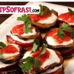 - Herbir patlicana bir köfte sarin, üzerine domates biber koyup kürdan batirin, borcama dizin