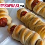 Milföy hamurlarini 1 cm lik şeritler halinde kesin. Parmaklarınızla uzatarak biraz inceltin. Sosisleri 1 parmak uzunluğunda kesip iyice kurulayın. Mi...