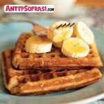- Pişen waffelın arasına muz dilimleri koyup üstüne çikolata ve frambuaz sos döküp fındık fıstıkla süsleyelim.