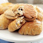 Yapılan hamurdan büyük bir yufka açılır, Yufka aralıklı konmuş olan harcın üzerine katlanır ve katlanan harç yarım ay şeklinde kesilir. Kesilen yufka parmak uçlarıyla bastırılarak yapıştırılır.