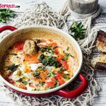 - Domates sosuna bu kez zeytinyağı koymayın. Zeytinyağını tavaya koyun, sosu ekleyin. Çok sıçrayacaktır, o yüzden kapak kullanın. Suyunu biraz çektirip üzerine yumurta kırın.
