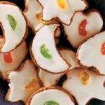 - Hamuru yaklaşık 5 mm. kalınlığında açın. Ay ve yıldız kalıplarıyla parçalar kesin. 190 derecede ısıtılmış fırında pişirin.