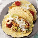 - Lavaşları da aynı şekilde, tavada veya fırında ısıtın. İnce doğranmış göbek veya kıvırcık, şerit kesilmiş tavuk parçaları ve ikiye bölünmüş çeri domatesleri lavaş ekmeğinin ortasına yerleştirin.