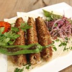 El ayası hafif ıslatılarak kıyma 20 cm uzunluğuna kadar elle sıkılarak uzatılır.