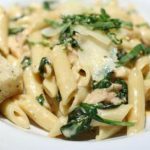 tavuk göğsü haşlanıp küp şeklinde doğranacak.penne makarna 12 dk haşlanıp süzülecek.tencede erittiğimiz yağın içine tavukları atacağız. hafif kavurup ...