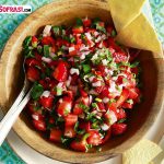 - Közlediğiniz sarımsak ile biberleri ince doğrayın. Doğranmış tüm malzemeyi geniş bir kaba aktarıp harmanlayın. En son zeytinyağını, tuzu, karabiberi ve balı ekleyip tatlandırın. Bekletmeden fırında üçgen şeklinde kızarttığınız tortilla cipslerle birlikte servis yapın.