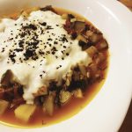 Doğranan kabaklara tuz ilave ederek pişmiş etlerin üzerine ilave edilir ve yumuşayıncaya kadar pişirilir. Yoğurt pişirilir, pişen yoğurt yemeğin üzerine ilave edilir ve 1 taşım kaynatılır. Daha sonra yemeğin üzerine kızdırılmış yağ, ve nane ekleyerek 10 dakika dinlendirilir. Bulgur yada pirinç pilavı ile birlikte servis yapılır.