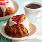 - Pudra şekeri ile limon suyunu bir kapta karıştırın. Kekin üzerine bu karışımı dökün. Üzerini taze çilek ile süsleyip servis yapın.