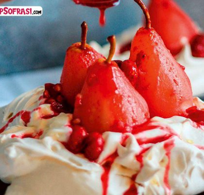 Kızılcık Sosunda Poşe Armutlu Pavlova