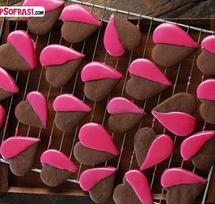 Pembe Glazürlü Kalp Kurabiye