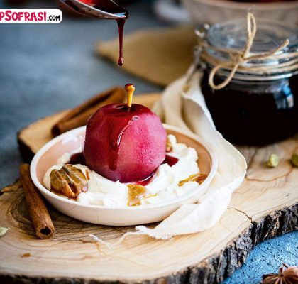 Kırmızı Şarap İle Poşe Edilmiş Elma