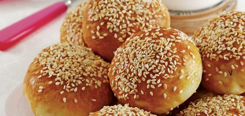 - Bir fırça yardımıyla yumurta sarısını poğaçaların üzerine sürün. Son olarak susam ve çörek otunu da ekleyin.