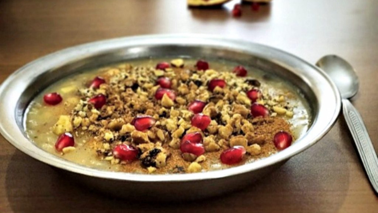 Aşure, üzerine doğranmış muz, kabuğu soyulmuş badem ve Antepfıstığı, dövülmüş ceviz ve tarçın konarak servis yapılır.