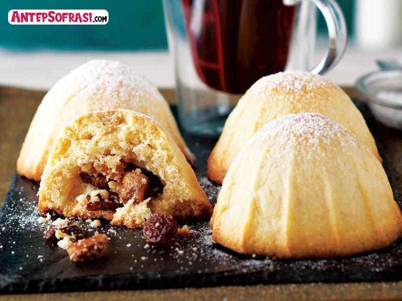 - Hamurun oyuk olan kısmına bir tatlı kaşığı kadar kuru meyveli harçtan koyup kapatın. Tüm hamur bitene kadar aynı işlemi tekrarlayın.