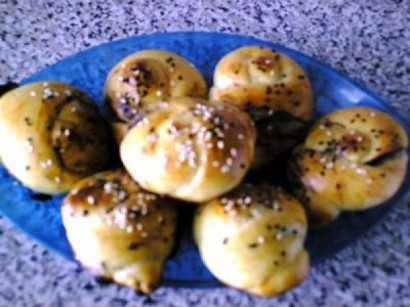 - icine zeytin ezmesi veya peynir katip rülo yapip dügüm atin veya normal pogaca sekli verin,
