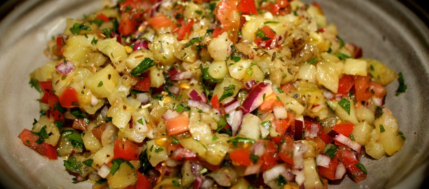 Bir bıçak yardımıyla patlıcanları gelişi güzel parçalayın.