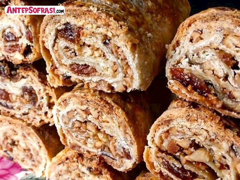 - Dinlenen hamuru mandalina büyüklüğünde bezelere ayırın. Bezeleri nişasta serperek, yufka gibi çok ince olmayacak şekilde açın. Her tarafına fındıklı karışımdan serpin. Bir kenarına oklava koyup sarın ve iki uçtan tutarak elinizle hafif büzün. Yağlanmış tepsiye büzdüğünüz hamuru yavaşça çıkartın. Bütün bezeleri aynı şekilde hazırlayın.