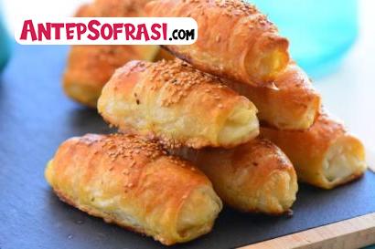 - Yufkayı üçgen dilimler halinde kesin geniş kısmına harcı koyup yufkanın iki kısmını kıvırın ve sigara böreğinden büyük rulolar sarın.
