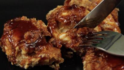 - Önce barbekü sosuna daha sonra da galeta ununa bulayın.