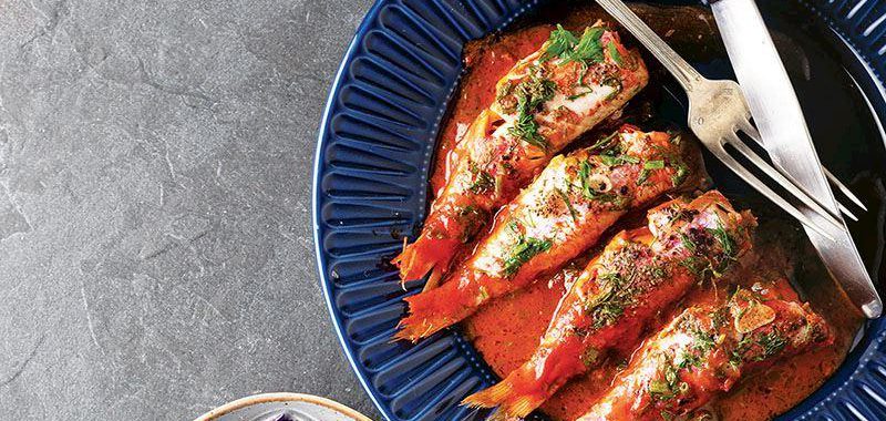 - Tarçını ilave edin ve iyice yumuşayana kadar pişirin. Ocaktan alın, üzerine ince kıyılmış kişnişi serpin ve balığın yanında servis yapın.