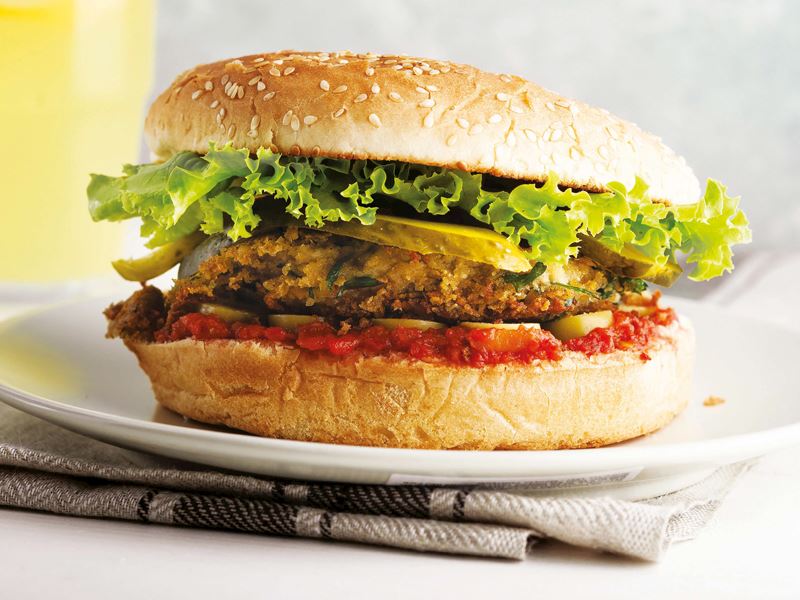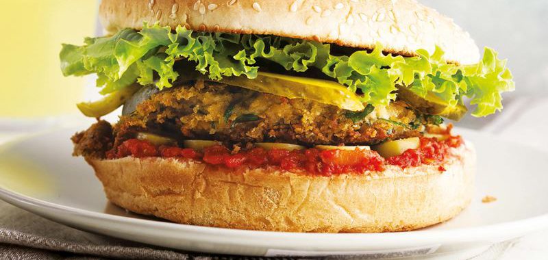 Haşlanmış taze barbunyayı robottan geçirerek püre haline getirin. Geniş bir karıştırma kabına alarak içerisine yumurta, galeta unu ve soya sosunu ilave edin. Tüm malzemeler özdeşleşene kadar yoğurun. Köfte hamurundan iri parçalar kopararak hamburger köftesi şekli verin. Galeta ununa bulayıp buzdolabında 30 dakika dinlendirin. Dinlenen köfteleri kızgın yağda altın rengi olana kadar kızartın. Kağıt havlu üzerine alarak fazla yağını çektirin. Rendelenmiş domatesi küçük bir sos tenceresinde salça ile hafif koyulaşana kadar pişirin. Hamburger ekmeklerini ekmek kızartma makinasında hafif kızartın. Her ekmeğin tabanına bir yemek kaşığı hazırladığınız domatesli sostan sürün. Üzerine sırasıyla dilimlenmiş yeşil zeytin, barbunya köftesi, salatalık turşusu ve marul yaprağını yerleştirin. Diğer ekmek dilimi ile üzerini kapatıp sıcak servis yapın.