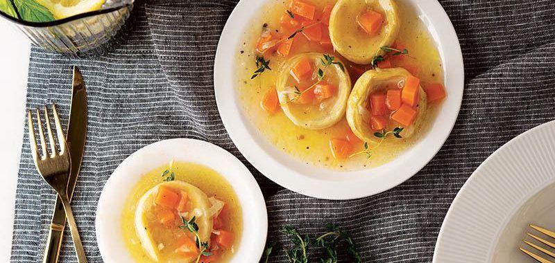 - Sıcak tavuk suyunu ekleyip kaynamaya bırakın. Su kaynayınca enginarları ilave edin. Tencerenin kapağını kapatın, ateşi kısın. Enginarlar yumuşayana kadar, yaklaşık 20 dakika pişirin.
