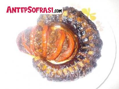 - -Sosu için ayrı bir tavada ilk önce tereyağ ve sıvıyağ kızdırılır.Daha sonra salçası konularak karıştırılır, ardından patlıcanların üzerini kaplamayacak miktarda su ilave edilir.Tuzu konulur.Sosu piştikten sonra tepsiye ilave edilir.
