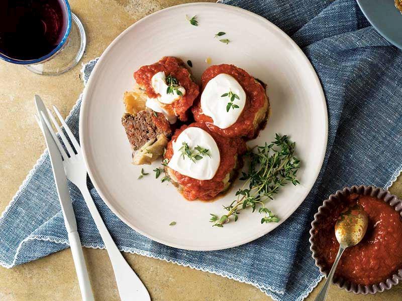 • Fırından çıkardığınız beytilerin üzerindeki boşlukları dolduracak şekilde, bekletmeden hazırladığınız domatesli sosu gezdirin. Tekrar sıcak fırına verin. 10 dakika sonra fırından alın. Çırpılmış süzme yoğurt ile birlikte sıcak servis yapın.
