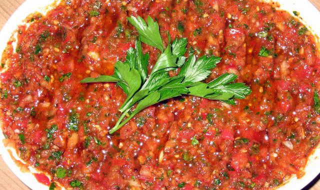 Kuru soğanın kabukları soyulur, ufak ufak doğranır. Maydanozlar ayıklanır, yıkanır ve ince ince doğranır. Doğranmış soğan, maydanoz, toz biber, kuru nane, sumak ekşisi, tuz ve ince kıyılmış ceviz içi iyice karıştırılır.