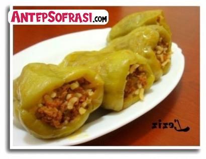 Dolmalık biberler yıkanıp,üst kısmı temizlenir. Dolma içini hazırlamak için margarin eritilir. Rendelenmiş soğan,kıyma,pirinç,salça ve baharatlarkarış...