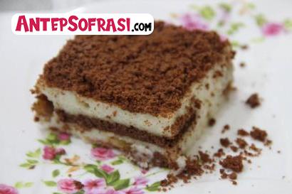 - Eridikten sonra 15 dakika mikserle çırpılır,yarısı tepsiye dökülür bisküviler dizilir.