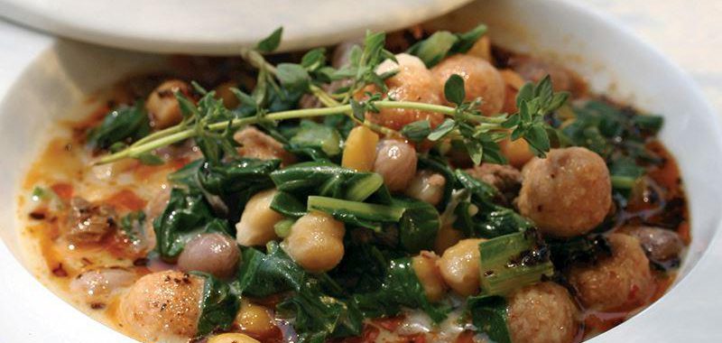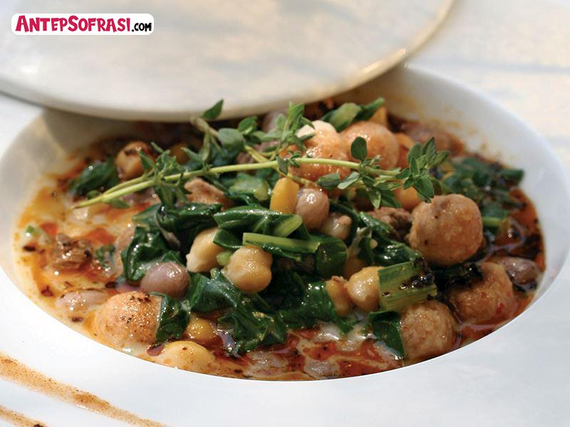 - Kafi miktarda etsuyu ilave edip kaynatın. Önceden haşlayıp süzdüğünüz hububatları, pazının kök kısımlarını ve köfteleri ekleyip pazılar yumuşayıncaya kadar pişirin.
