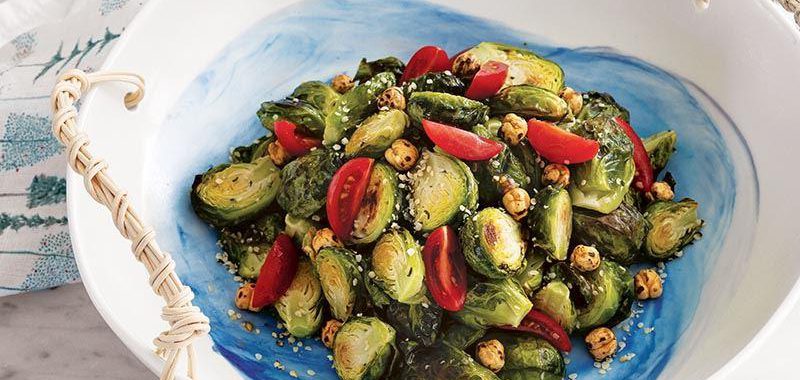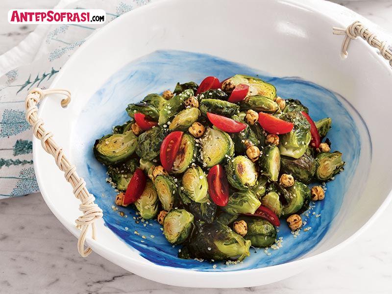 - Fırını 200 derecede ısıtın. Brüksel lahanasını iyice yıkayın ve ikiye kesin, sirkeli suda 10 dakika bekletip çıkarın. Suyunu iyice süzdürüp kurulayın ve bir kapta sıvı yağ ile iyice harmanlayın. Yağlı kağıt serili fırın tepsisine yayın ve önceden ısıttığınız fırında, üstü hafif karamelize oluncaya kadar pişirin. Fırından alın ve bir servis kasesine aktarın.