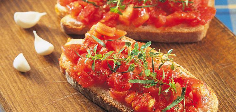- Ekmeklerin üzerlerine domatesli sosu paylaştırın. Kıyılmış maydanoz ve taze kekik dallarıyla süsleyip servis yapın.