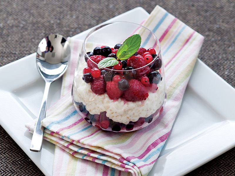 Süt ve tuzu bir tencereye alın ve orta ateşte ısıtın. Bol suyla yıkanmış ve suyu süzülmüş bulguru ekleyip kapağı kapalı olarak yumuşayıncaya kadar pişirin. Ocaktan alıp soğumaya bırakın. Krema, yoğurt, rendelenmiş portakal kabuğu ve toz tatlandırıcıyı bir kapta çırpın. Bulguru ekleyip karıştırın. Kaselerin diplerine meyvelerin yarısını paylaştırın. Üzerine bulgurlu karışımı paylaştırın ve en üste meyveleri ekleyin. Servis yapın.