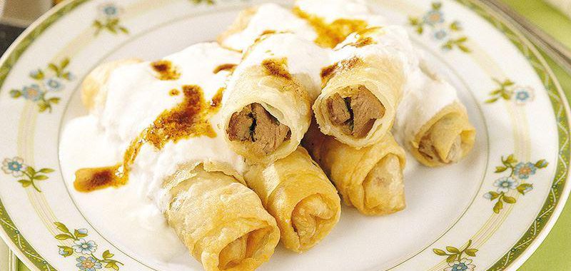 - Her parçanın ucuna bir kaşık kadar et yerleştirip sigara böreği şeklinde sarın. Uçlarını hafif ıslatarak kapatın.