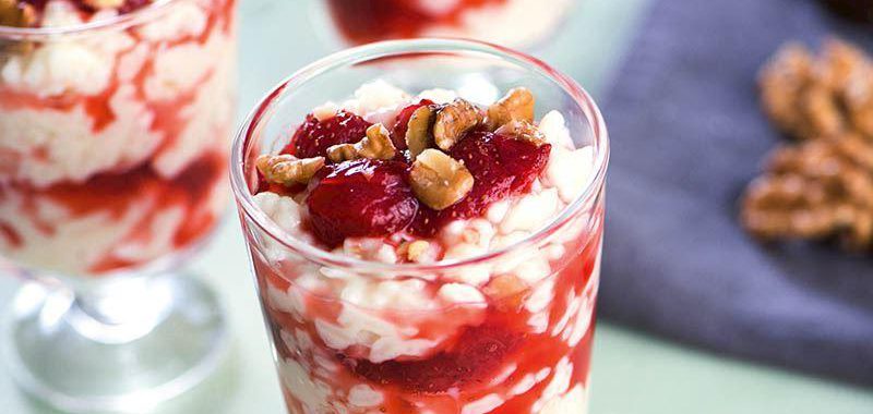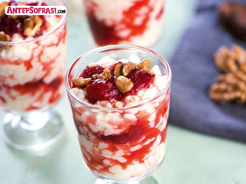 Cevizli ve çilek soslu sütlaç , kolay Cevizli ve çilek soslu sütlaç yapımı, Cevizli ve çilek soslu sütlaç resimli anlatımı ve birbirinden lezzetli Sütlü Tatlılar, Lezzet'te!