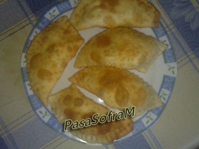 - Yufkalari ücgen seklinde katlayip, kenarlarini parmaklarinizla bastirip catallada süsleye bili