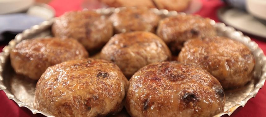 Üzerine cam kabı dolduracak şekilde ciğerli pilav ekleyin. Kenarlarından sarkan kuzu gömleğiyle pilavın üzerini kapatarak iyice bastırın, içi pilav dolu olan kuzu gömlekli kaseyi fırın tepsisine ters çevirmek gerek.